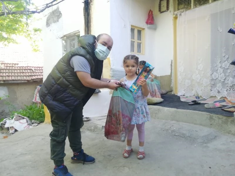 Hayırseverlerin yaptığı yardımları ihtiyaç sahiplerine bir bir ulaştıran Hançeroğlu, bu kez de çocukları sevindirdi.