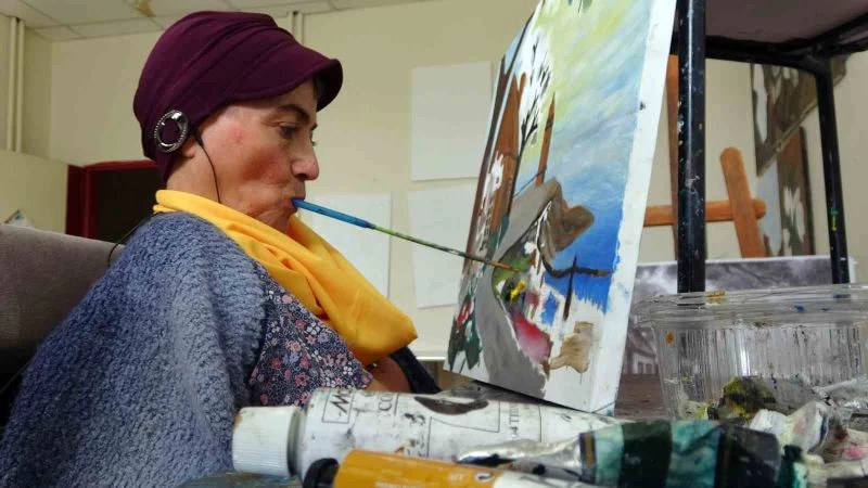 Yozgat’ta elleri ve kollarını kullanamadığı için ağzıyla tuttuğu fırça ile yüzlerce yağlı boya tablo yapan bedensel engelli Narin Işık, açacağı resim sergisinden elde edilen geliri depremzede vatandaşlara bağışlayacak.