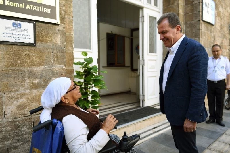 Mersin’de 66 yaşındaki yüzde 94 engelli Ayşe Tomak, belediyenin hediye ettiği akülü tekerlekli sandalye sayesinde, komşusundan kiraladığı tekerlekli sandalyeye her ay 300 lira kira parası vermekten kurtuldu.