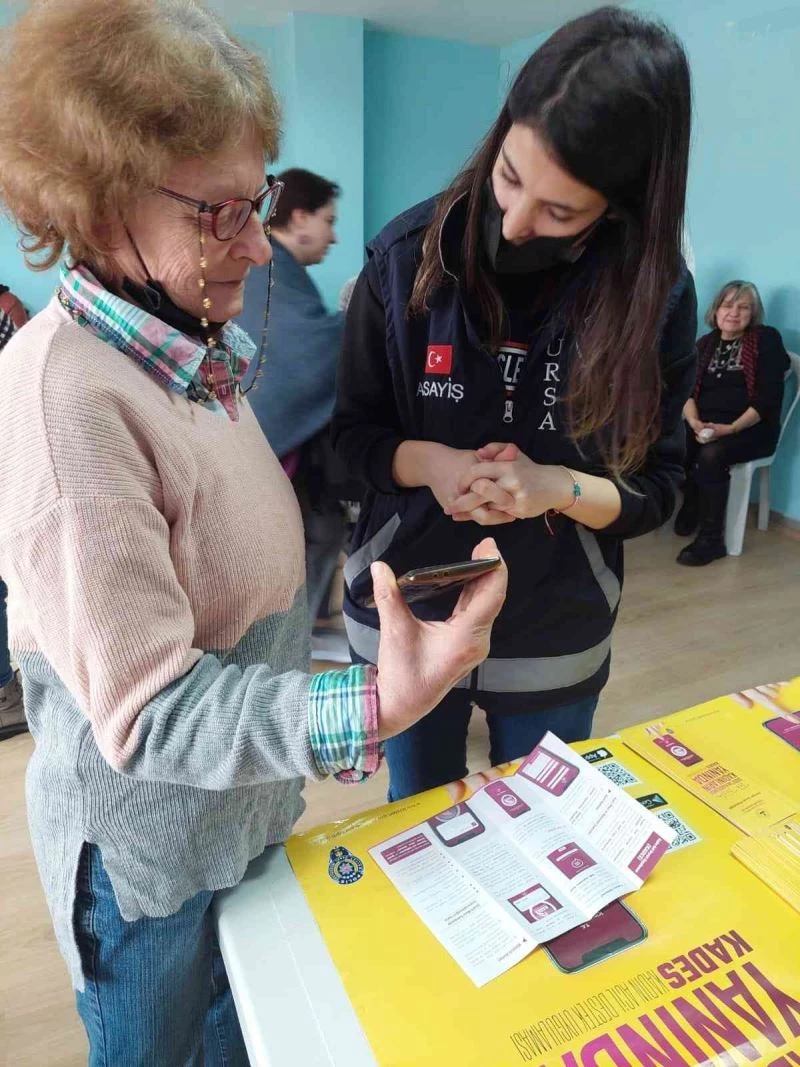 Bursa Emniyet Müdürlüğü Aile İçi ve Kadına Yönelik Şiddetle Mücadele Büro Amirliği ekipleri engelli kadınlara bilgilendirmede bulunurken, KADES uygulamasına katılımları sağlandı.