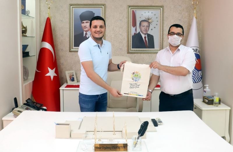 Engelli Kooperatifinde üretilen ilk bez çantalar Başkan Gültak’a hediye edildi