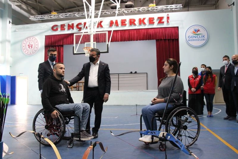 Düzce – Engellerine rağmen okçuluk sporu ile uğraşan 2 özel sporcu için Düzce Gençlik ve Spor İl Müdürlüğü’nün talebi olan özel sporcu sandalyeleri hediye edildi. Sandalyelerini Vali Cevdet Atay’ın elinden alan sporcular, büyük mutluluk yaşadıklarını dile getirdiler.
