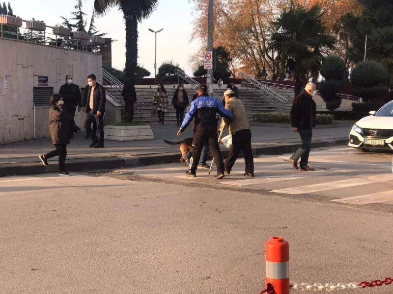 Zonguldak’ta bir polis memuru yolun karşısına geçmeye çalışan engelli vatandaşa yardım etti.