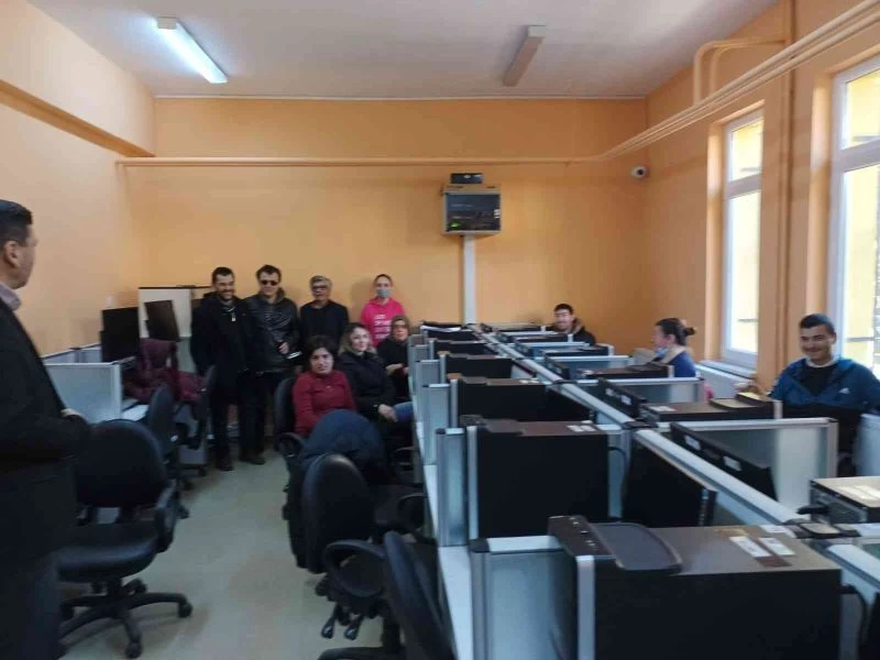 Hasan Çakın İlçe Halk Kütüphanesi’nde 12 engelli kursiyere her gün 09.00 ila 12.00 saatleri arasında sesli kütüphanede usta öğretici Selcan Yeter tarafından 163 saat ders verilecek.