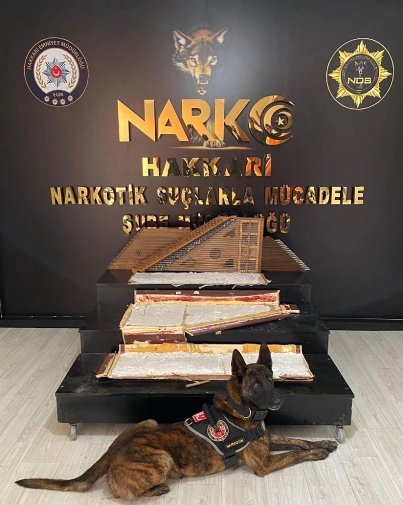 Hakkari’de batı illerine uyuşturucu sevkiyatı yapılacağı bilgisi edinilmesi üzerine bir araçta yapılan aramada, 3 adet kanun enstrümanının kılıfının içerisine zulalanmış vaziyette 13 kilo 500 gram metamfetamin maddesi ele geçirildi.