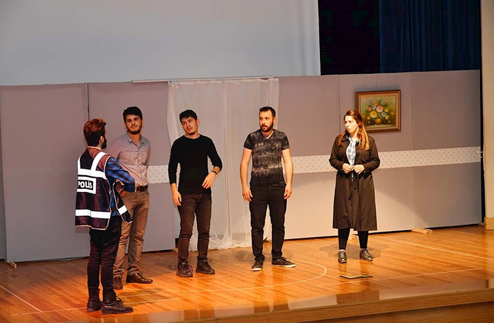Osmaniye Korkut Ata Üniversitesi (OKÜ) Sahne Oyunları Kulübü tarafından hazırlanan "Entrikalı Dolap Komedyası" adlı tiyatro oyun, üniversiteli öğrenciler için sergilendi. 15 Temmuz Şehitler Amfisi`nde ki tiyatro oyununa, akademik ve idari personel ile çok sayıda tiyatro sever öğrenci katıldı. Yunus Emre Gümüş`ün yazdığı, Sahne Oyunları Kulüp Danışmanı Öğretim Görevlisi Celal Bıçakcı`nın yönettiği, Ali Ertuğrul Kürkçü, Ceren Karatepe, Oğuz Demir, Sinem Çevik, Kenan Pekdiker, Kübra Karakaya, Hamdullah İmrak, Kübra Genç, Oğuzhan Erdoğan, Nihat Öğretmen ve Emre Çakmak?ın rol aldığı `Entrikalı Dolap Komedyası` tiyatro oyununda, Sosyal Medya Tanıtımını Elif Biçer yaptı. Sahne Oyunları Kulübü Danışmanı Osmaniye Meslek Yüksekokulu Müdür Yardımcısı Öğretim Görevlisi Celal Bıçakcı, tiyatro oyununun ortaya çıkmasında emeği olanlara teşekkür etti. Daha sonra sahneye çıkan ve kulübün Sosyal Medya Tanıtımını yapan Elif Biçer, kulüp adına kısa bir konuşma yaptı. Biçer, "Toplum olarak anlatılacak birçok öykümüz anlatıldığında ağlayacak veya güldürecek birçok özgün hikâyelerimiz var. Bu hikâyeler bir şekilde bizlere ulaşarak günümüze kadar gelmektedir. Bizler bu hikâyeleri sizlere tiyatro ile ulaştırmaya çalışıyoruz. Yaptığımız çalışmalar, araştırmalar ve fedakârlıklar sonucunu bugün Entrikalı Dolap Komedisi adında tiyatro oyunumuz ortaya çıktı." diye konuştu. Sahne Oyunları oyuncularının ortaya koyduğu performans salonu dolduran izleyiciler tarafından ayakta alkışlandı.
