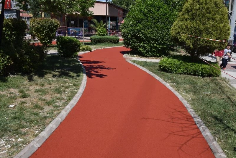 Manisa Büyükşehir Belediyesi, çocuk oyun gruplarının bulunduğu alanlarda ve vatandaşların spor yaptığı tartan pistlerde başlattığı zemin yenileme çalışmalarını sürdürüyor. Kent Estetiği Dairesi Başkanlığı ekipleri, yüzeyinde bozulmalar meydana gelen veya zamana ve kullanıma bağlı olarak yıpranan zeminleri hızla yeniliyor. Çalışmalar hakkında bilgi veren Kent Estetiği Dairesi Başkanı Hakan Göktaş, “Manisa Büyükşehir Belediyesi olarak Cemil Çöllü Parkı ve yürüyüş yolları, ETV Parkı, Çakapark, Malta Parkı, Hafsa Sultan Parkı ve Mahalle Muhtarlığı önünde epidyem zemin yenileme çalışmalarımız hızla ilerliyor. Çocuk oyun alanlarında farklı renkleri kullanırken, yürüyüş yollarında standart tek renk uygulamasını gerçekleştiriyoruz. Çocuklar oyun alanlarında oynarken ya da vatandaşlarımız spor yaparken düşmesi durumunda epidyem zemin esnek yapısı ile betonun sert etkisini azaltıyor ve bu şekilde yaralanmaların önüne geçiyor. Program dahilinde görev sahalarımızdaki zeminleri ivedilikle yenileyeceğiz” diye konuştu.