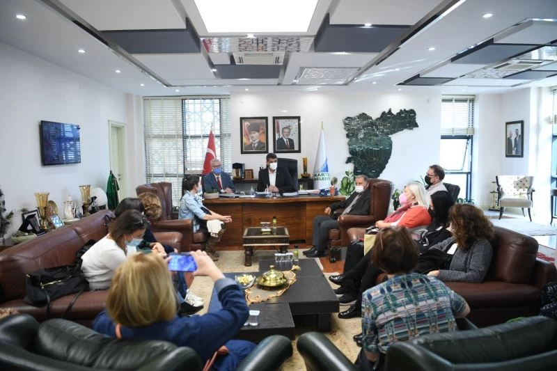 Kartepe Belediye Başkanı Mustafa Kocaman İspanya, İtalya, Almanya, Portekiz ve Makedonya’dan Kartepe’ye gelen 15 öğretmeni makamında misafir etti.