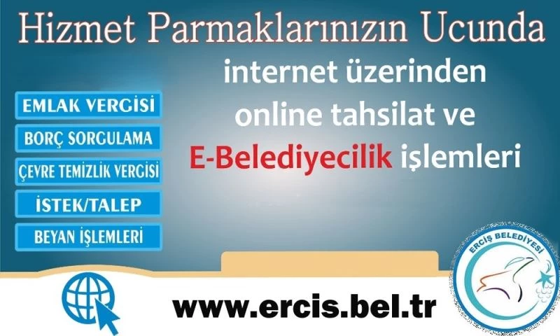 Söz konusu çalışmalar kapsamında emlak, çevre temizlik, reklam gibi vergilerin sorgulanması ve ödenmesi, arsa rayiç bedellerinin hesaplanması gibi iş ve işlemlerin takibi yapılabilecek. Yurtiçi ve yurtdışından vatandaşlar Erciş Belediyesinin www.ercis.bel.tr adresine girerek online hizmetten faydalanabilecek.