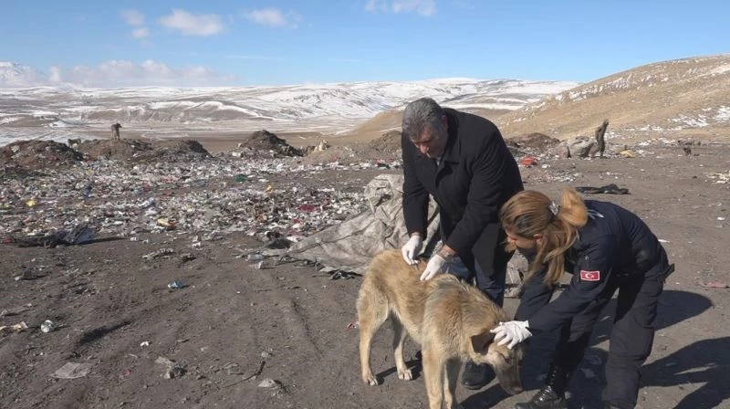 Erciş Belediyesi Zabıta Müdürlüğü ekipleri ile veteriner hekimler, ilçe merkezine 15 kilometre uzaklıktaki Çelebibağı Mahallesi çöp alanında sokak köpeklerine yönelik aşılama ve yem bırakma çalışması başlattı. Bölgeye giden ekipler, dondurucu soğuk ve kar nedeniyle yiyecek bulmakta zorlanan hayvanları besleyip sağlık kontrolünden geçirerek aşıladı.