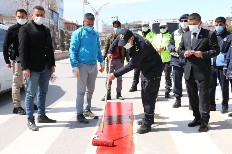 Yayalara öncelik tanınmasına ve can güvenliğine dikkat çekilen uygulama, Erciş Kaymakamı ve Belediye Başkan Vekili Dr. Nuri Mehmetbeyoğlu, İlçe jandarma Komutanı Mehmet Demir, İlçe Emniyet Müdürü Süleyman Trak, emniyet ve jandarma ekiplerinin katılımlarıyla gerçekleştirildi. Yaya geçitlerindeki beyaz renkli şeritlerden bazılarının kırmızı renge boyandığı ekinlikte konuşan Erciş Kaymakamı Mehmetbeyoğlu, "İçişleri Bakanımız Süleyman Soylu sosyal medya hesabından yapmış olduğu ‘30 Mart’ta kırmızı çizgimizi çekiyoruz’ paylaşımının ardından ‘Yaya Önceliği Kırmızı Çizgimizdir’ sloganıyla bizde hemen çalışmalarımıza başladık. Yaya geçidinden geçerken sürücülerimizin ve yayalarımızın daha dikkatli olmaları konusunda kırmızı çizgilerimizi çektik. Yapılan kırmızı çizgi uygulamasının insanlarda bir farkındalık oluşturarak meydana gelebilecek olumsuzluklarında önüne geçeceğine inanıyorum” dedi.