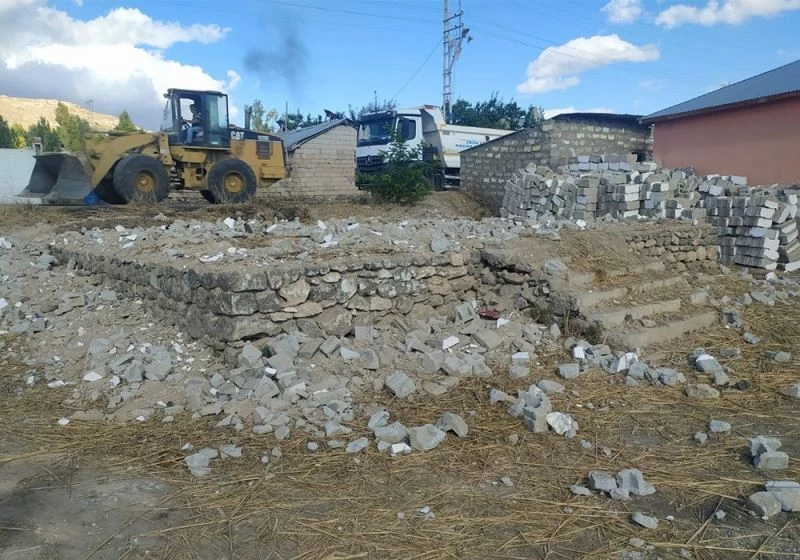 Van’ın Erciş ilçesinde tehlike oluşturan metruk binalar belediye ekipleri tarafından yıktırılıyor.