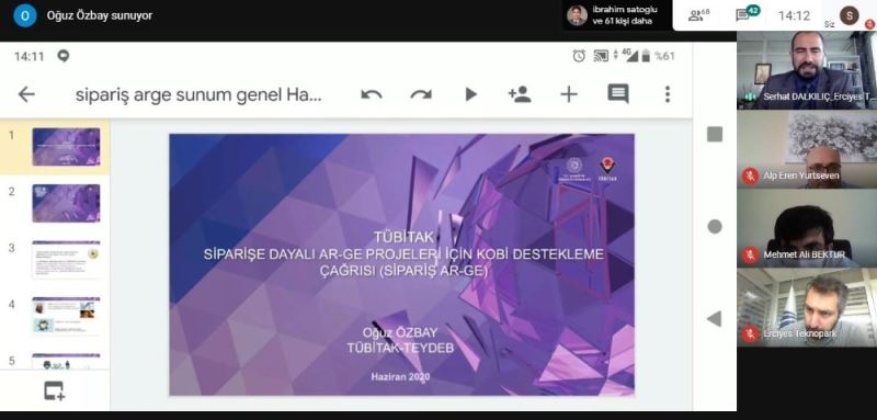 TÜBİTAK Teknoloji ve Yenilik Destek Programları Başkanlığı (TEYDEB) kapsamında açılan iki yeni çağrı olan Siparişe Dayalı Ar-Ge Projeleri için KOBİ Destekleme Çağrısı (Sipariş Ar-Ge-2020) ve Patent Tabanlı Teknoloji Transferi Destekleme Çağrısı ile ilgili Erciyes Teknopark tarafından bilgilendirme webinarı düzenlendi.