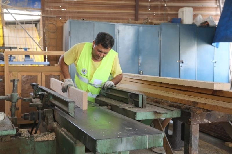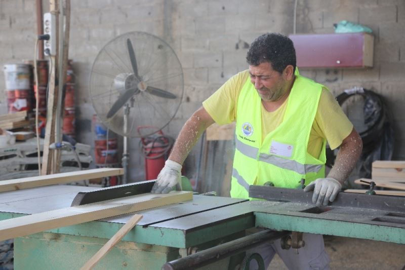 Mersin’in Erdemli ilçe Belediyesi, kendi bünyesinde kurduğu marangozhanede üretmeye devam ediyor.