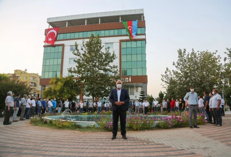 Mersin’in Erdemli Belediyesince, Ermenistan’ın saldırısına uğrayan kardeş ülke Azerbaycan’a destek amacıyla, belediye binasına Azerbaycan ve Türk bayrakları asıldı, personel tarafından İstiklal Marşı okundu.