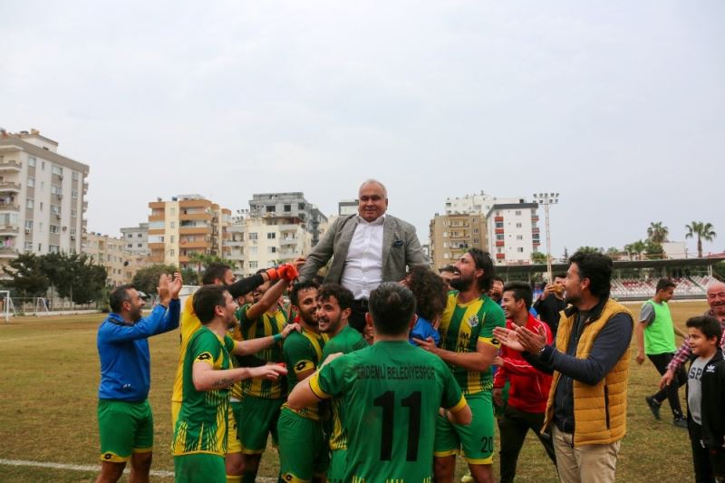 Erdemli Belediyespor’un zirvede yer aldığı Mersin Süper Amatör Lig play-off grubunda bitime üç hafta kala koronavirüs salgını nedeniyle, maçlara ara verilmişti. 4 takımın mücadele ettiği ligde Erdemli Belediyespor, oynadığı 3 maçta 3 galibiyet elde ederek 38 puanla, zirvede yer alıyordu. Türkiye Futbol Federasyonu’nun ligleri tescil etmesinin ardından grubunda 4 puan farkla lider durumda olan Erdemli Belediyespor’un şampiyonluğu tescillenerek, bir üst lige çıktı.