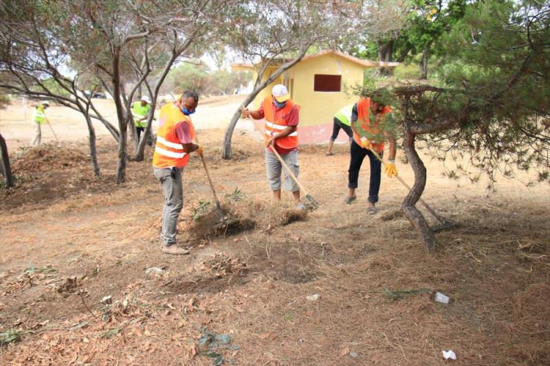 MERSIN (AA) – Erdemli Belediye Baskani Mükerrem Tollu, belediye temizlik ekiplerinin Erdemli Talat Göktepe Tabiat Parki Çamliginda yürüttügü çalismalari yerinde inceleyerek bölgedeki agaçlarin budanmasina yardimci oldu.