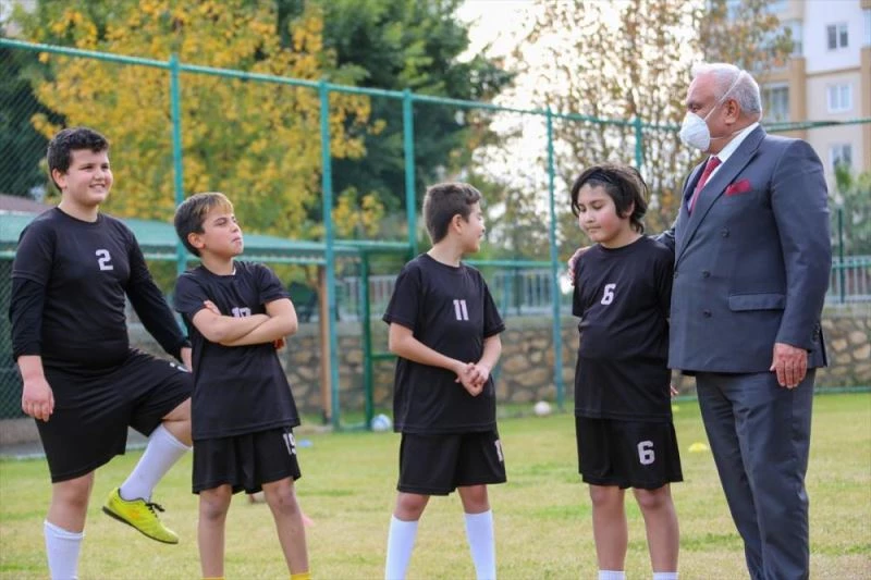 Erdemli Belediyesi Spor Koordinasyon Merkezi'nde, Kovid-19 tedbirleri kapsamında açılan futbol okuluna katılan öğrenciler hem spor yapıyor hem de salgın nedeniyle yaşadıkları olumsuzlukları üzerlerinden atıyor.