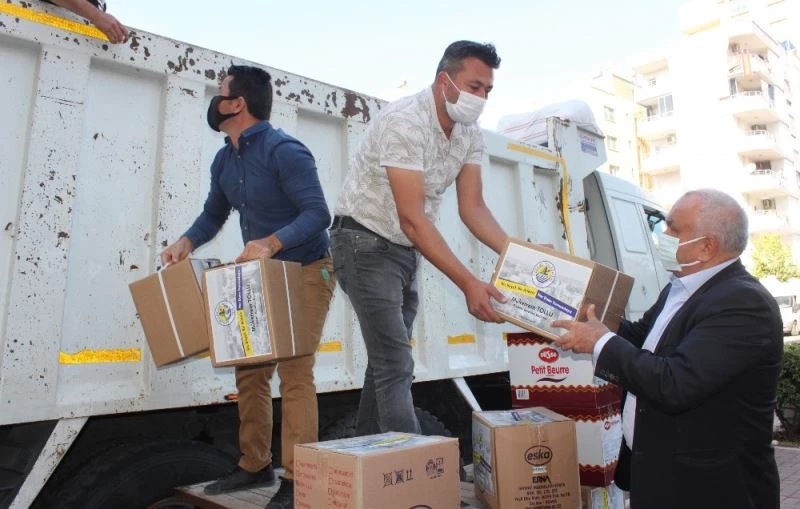 Mersin’in Erdemli ilçesinde belediye vatandaş işbirliği ile İzmir’deki depremzedelere ulaştırılmak üzere hazırlanan bir kamyon dolusu battaniye ve gıda malzemesi yola çıktı.