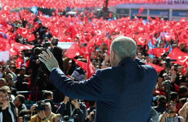 "Beş, Türkiye yüzyılı vizyonumuzun siyasi ve ekonomik hedeflerini birer birer hayata geçirerek ülkemizi dünyanın en büyük 10 ekonomisi arasına dahil edeceğiz. Bu görev bize vermeye var mısınız. Altı, yönetim sistemimizi gençlerimizin özgürlük, adalet, hak, refah beklentilerine en ileri düzeyde karşılık verecek şekilde geliştireceğiz. Eski Türkiye güzellemesi yapanların tek dertlerinin altılı masalda olduğu gibi, ne yapıyorlar, sen ne istiyorsun, şunu. Sen ne istiyorsun, bunu. Onlara bir şeyler dağıtmakla meşguller bunlar. Biz 85 milyona ne yaparız, bunu yerine getirmekle mükellefiz. Bu görevi vermeye var mısınız. Yedi, tek becerileri kendi partilerdeki iktidarlarını sürdürmek, tek başarıları kongre kazanmak olanların Türkiye’ye verecekleri hiçbir şey olmadığını, seçim gününe kadar attığımız her adımla ispatlayacağız, buna inanıyor muyuz. Sekiz, kapalı devre parti toplantılarında belki işe yarayabilen yalan ve iftira siyasetinin, sahte cengaverlik gösterenlerin gerçek hayatta karşılığı bulunmadığını bıkıp usanmadan anlatmaya var mıyız. Biz 20 yıllık eserlerimizle konuşuyoruz, öyle mi, hizmetlerimizle konuşuyoruz. Peki Bay Kemal ve yandaşları neyle konuşuyor. Onlar musluk musluk, musluk açıyorlar, musluk kapatıyorlar ama biz işte biraz sonra da göreceksiniz eserlerimizle ortadayız. Cumhuriyetimizin yeni yüzyılını kucaklayacak vizyonumuzla milletimizin huzuruna çıkıyoruz ve milletimize asla yalanla değil hakikatle konuşuyoruz. Şimdi hazır mısınız, bu muhteşem katılım hep bir ağızdan Türkiye’nin dört bir yanı duysun. Tamam, gür seda ile tek millet, tek bayrak, tek vatan, tek devlet, bir olacağız, iri olacağız, diri olacağız, kardeş olacağız, hep birlikte Türkiye olacağız."