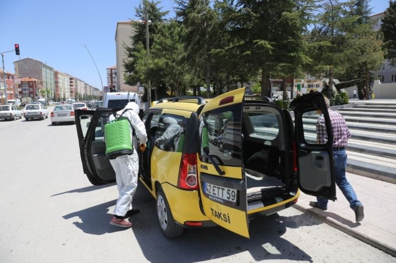 Ereğli Belediyesi ticari taksileri dezenfekte etmeye devam ediyor