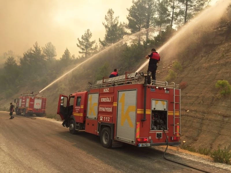 Kdz. Ereğli Belediyesi İtfaiye Müdürlüğü’ne bağlı 2 araç ve 8 personelden oluşan yardım ekibi, Antalya Manavgat’ta devam eden orman yangınını kontrol altına almak için mücadelesini sürdürüyor.