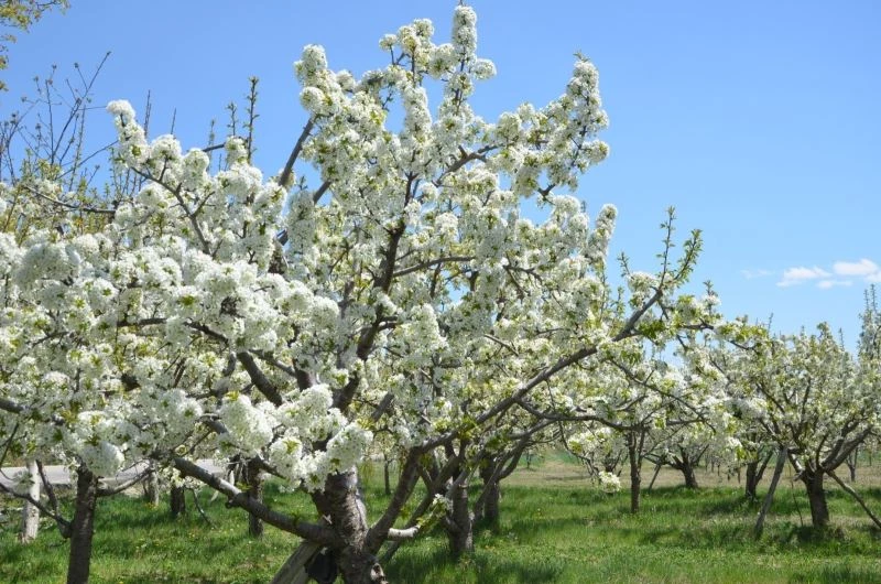Türkiye’de en fazla beyaz kiraz üretiminin yapıldığı Konya’nın Ereğli ilçesinde, kiraz bahçeleri adeta gelinliğini giyerek beyaza büründü.
