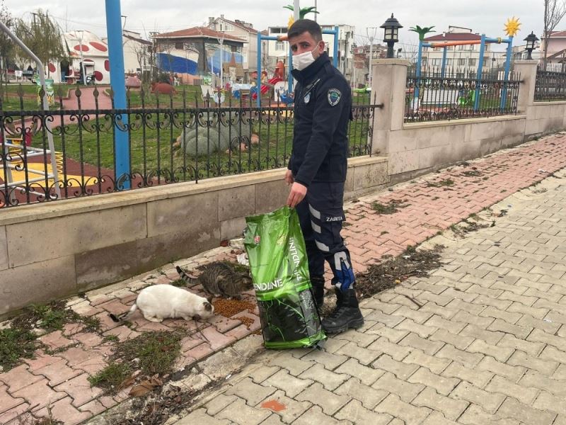 Ergene Belediyesi Zabıta Müdürlüğü ekipleri, belediyeye ait geçici hayvan bakımevinden tedarik ettikleri mama ve yemleri sokak hayvanları ile buluşturuyor.