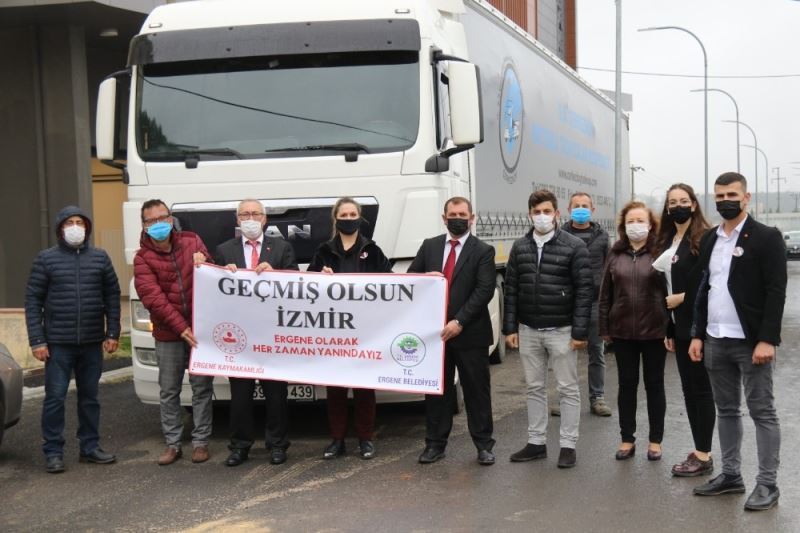 İzmir’de meydana gelen depremin ardından tüm Türkiye’de olduğu gibi Tekirdağ’ın Ergene ilçesinde de Ergene Kaymakamlığı Sosyal Yardımlaşma ve Dayanışma Vakfı (Ergene SYDV) ile Ergene Belediyesi harekete geçerek, Ergene halkının yardım elini İzmir’e uzatması için çalışma başlatmıştı. AFAD koordinasyonunda yürütülen çalışmalarda ihtiyaç sahibi ailelere dağıtılmak üzere standart gıda kolisi ve battaniyeye ihtiyaç olduğunun bildirilmesinin ardından Ergene SYDV ve Ergene Belediyesi ekipleri tedarik edilen erzak paketleri, yatak, battaniye, kağıt temizlik malzemeleri ve çocuk bezi paketlerini Tekirdağ’dan İzmir’e gönderilen tıra yüklediler. Ergene Belediye Başkan Vekili Salih Tıknas, Belediye Başkan Yardımcıları Mehmet Cebeci ve Yüksel Baydarlı da İzmir’e gönderilen yardım tırının yüklenmesi çalışmalarına katıldılar. Yatak, çocuk bezi, temizlik malzemeleri, battaniye ve gıda kolilerinden oluşan yardım malzemeleri daha sonra İzmir’e ulaştırılmak üzere yola çıktı.