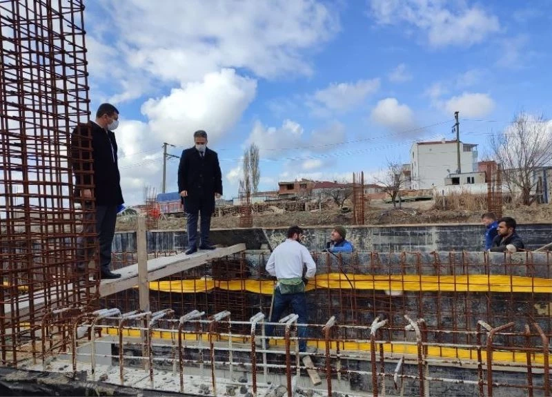 Sağlık Mahallesi 1989 nolu parselde yapımı devam eden yarı olimpik yüzme havuzu, kapalı kort ve geçici kabulü yapılan Gençlik Merkez’nin yanındaki alana kapalı spor salonunun temel yalıtımı yapılarak betonu atıldı.