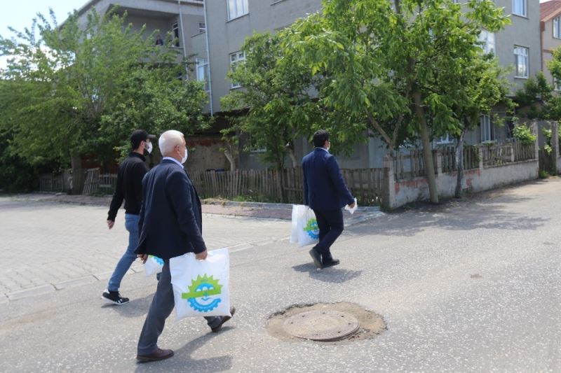 Covid-19 salgınından vatandaşların korunması için Tekirdağ’ın Ergene ilçesinde maske dağıtmaya devam eden Ergene Belediyesi önce ki gün Ahimehmet Mahallesi ve Yeşiltepe Mahallesi’nde kapı kapı gezerek vatandaşlara maske dağıttı.