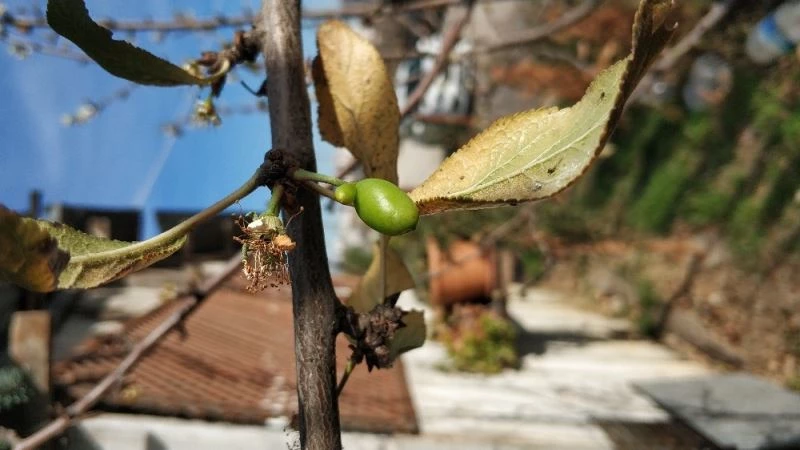 Samsun’da erik ağacı ocak ayında çiçek açarak meyve verdi.