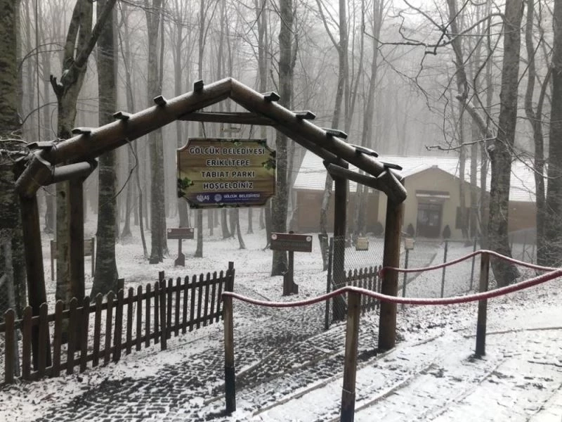 Eriklitepe Tabiat Parkı dün akşam saatlerinde başlayan kar yağışının ardından beyaza bürünerek karpostallık görüntüler oluşturdu.