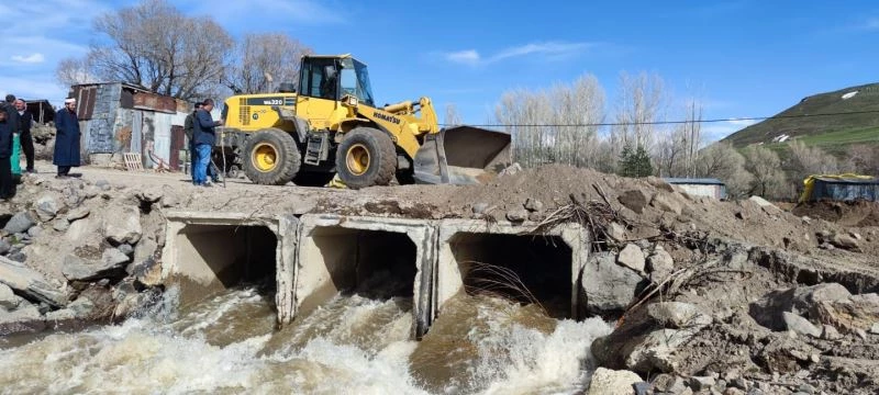 Aşkale’nin Çiftlik Köyünde kar sularının erimesiyle debisi yükselen dere köy yollarını birbirine bağlayan köprüyü yıktı.