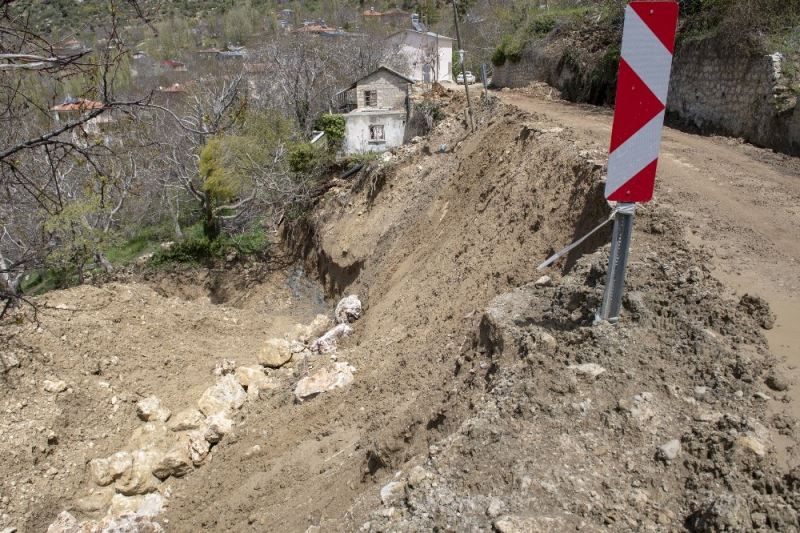 Eriyen kar suları yolu yıkmıştı
