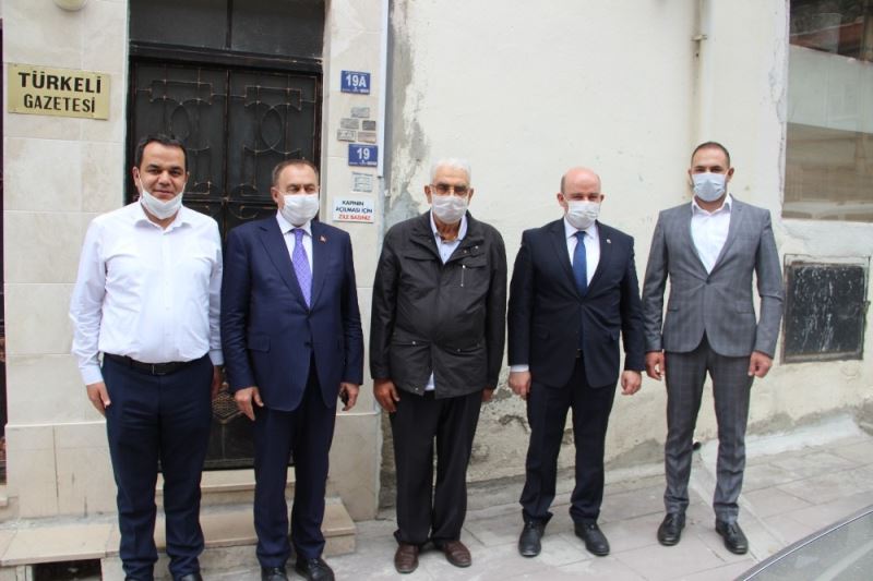 Türkeli Gazetesi İmtiyaz Sahibi Önder Artuk ve Türkeli Gazetesi Genel Yayın Danışmanı Hacı Hakkı Özsoy’u Orman ve Su İşleri Eski Bakanı Afyonkarahisar Milletvekili Prof. Dr. Veysel Eroğlu, AK Parti İl Başkanı Hüseyin Sezen ile birlikte ziyaret etti. Türkeli Gazetesi’ndeki bayrak değişiminden dolayı hem Hacı Hakkı Özsoy hem de Önder Artuk’u tebrik eden Eroğlu, Türkeli Gazetesi’nin 80 yıla yakın bir süredir tarafsız, doğru ve ilkeli yayın anlayışından hiç sapmadan yayın hayatını sürdürdüğünü kaydetti.