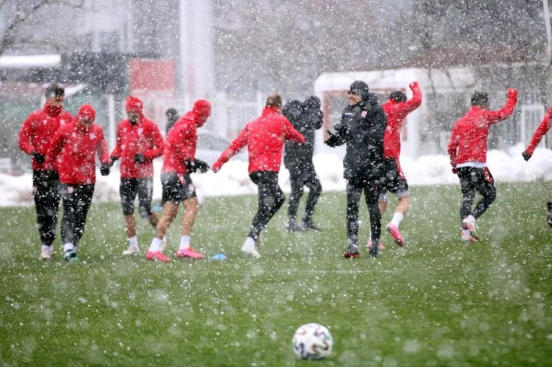 Öte yandan İstanbulspor maçı hazırlıkları, yoğun kar yağışı altında Nuri Asan Tesisleri’nde devam etti.