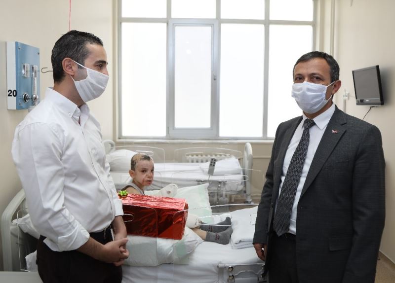 Suriye’nin Halep şehrinde, ikamet ettikleri evde soba patlaması sonucu vücudunun büyük bir kısmı yanan, 6 yaşındaki Halid Hamo’nun, Erciyes Üniversitesi (ERÜ) Tıp Fakültesi Gevher Nesibe Hastanesi’nde tedavisine başlandı. Plastik, Rekonstrüktif ve Estetik Cerrahi Anabilim Dalı’nda tedavisine devam edilen küçük Halid’i ERÜ Rektörü Prof. Mustafa Çalış ziyaret etti.