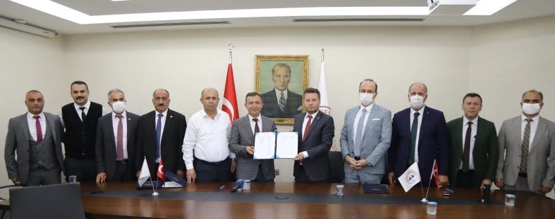 Konuşmaların ardından Rektör Prof. Dr. Mustafa Çalış ve Türkiye Sağlık İşçileri Sendikası Genel Başkanı Hakan Toy ve yetkililer arasında 3 yıllığına düzenlenen toplu iş sözleşmesine imza atıldı.