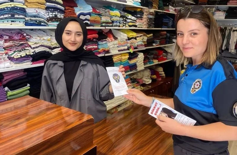 Erzincan İl Emniyet Müdürlüğü Toplum Destekli Polislik Büro Amirliği ekipleri, esnafı sahte para ve dolandırıcılığa karşı broşür dağıtarak bilgilendirdi.