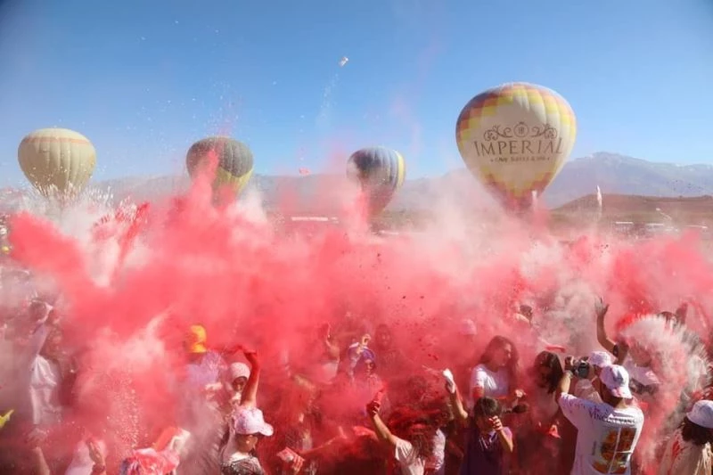 Renkli görüntülerin ortaya çıktığı festivalde alanda katılımcılara kırmızı ve beyaz boya dağıtıldı. Organik toz boyaları birbirine atan yüzlerce katılımcı, müzik eşliğinde doyasıya eğlenceli gün geçirdi.
