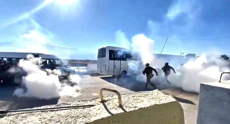 Durdurulan midibüsteki şüpheliler gözaltına alınırken rehineler kurtarıldı. Sis bombalarının kullanıldığı ve drone ile görüntülenen tatbikat adeta nefes kesti.