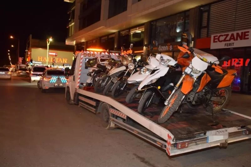 19.30- 20.30 saatleri arası Atatürk Mahallesi Ali Kemali Caddesi üzerinde, 21.00- 22.00 saatleri arası Yavuz Selim Mahallesi Bahçesaray Caddesi üzerinde motosikletler üzerinde gerçekleştirilen denetimlerde; 63 araç/sürücüsü kontrol edilerek 8 motosiklet, 1 otomobil olmak üzere toplam 9 araç otoparka çekildi.