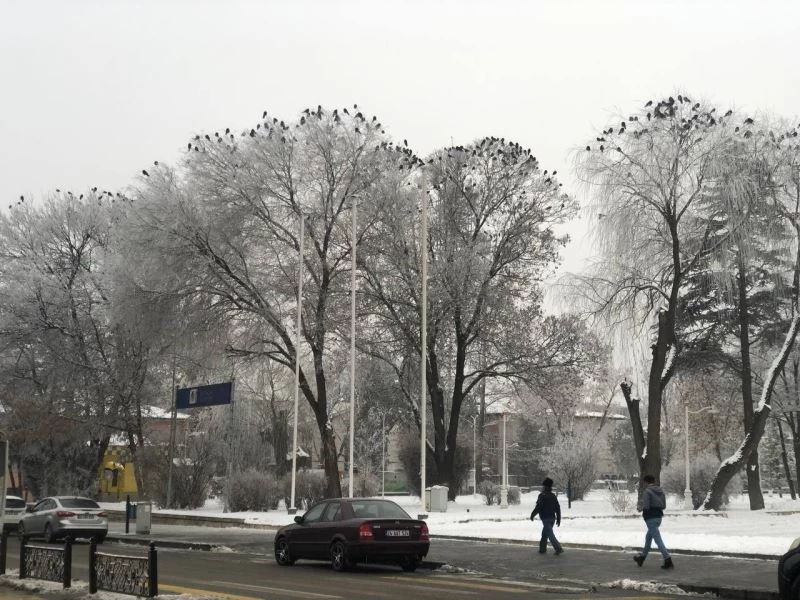 Hafta başında kent merkezine yağan karın ardından Erzincan’da yoğun sis ve soğuk hava etkisini sürdürüyor. Kenti saran sis nedeniyle görüş mesafesi yer yer 5 metreye kadar düştü. Kentte gece ve gündüz hava sıcaklığı sıfırın altında seyrediyor. Adeta buzul kente dönen Erzincan’da ağaçların üzerine kırağı düştü.