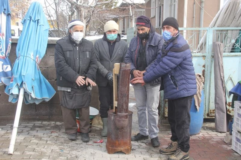 “Erzincan’da pazarcılar soğuktan korunmak için soba kurdu”