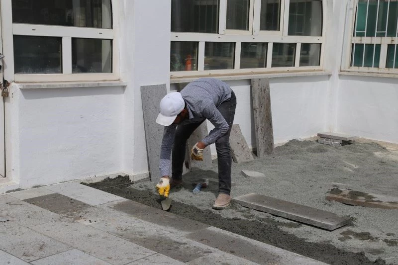 Erzincan’da Aslanlı Mahallesi’nde bulunan Mehmet Türker Camii ve Külliyesi’nde bahçe ve çevre düzenlemesi çalışmaları gerçekleştirdi. Düzenleme çalışmalarında cami avlusunda yer alan zamanla tahrip olan mevcut zemin sökülerek andezit taşı ile kaplandı. Avlu girişi ve cami girişinde yer alan merdivenlerde andezit taşı ile kaplanarak vatandaşların kullanıma hazır hale getirildi.