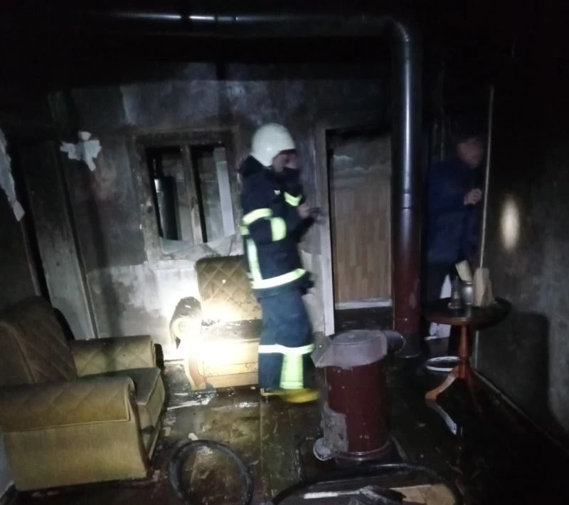 Yangında maddi hasar oluşurken evde bulunan eşyalar kullanılamaz hale geldi.