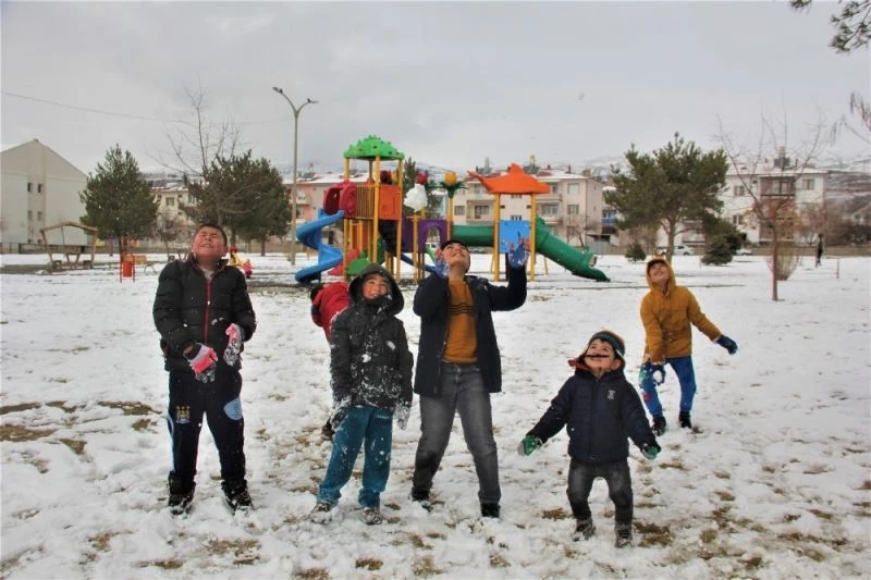 Uzun bir aradan sonra, Erzincan kent merkezinde de etkili olan kar yağışının ardından karı özleyen çocuklar girdikleri canlı derslerden sonra, kar topu oynamak ve karın tadını çıkarmak için parklara koşup eğlendiler.