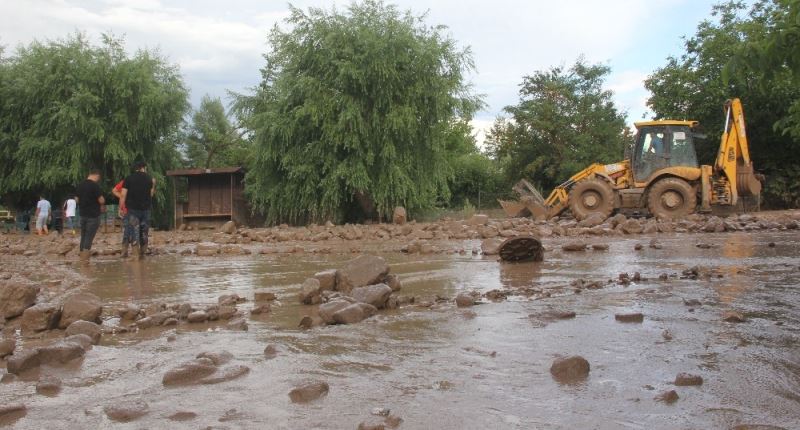 Erzincan’da etkili olan sağanak sonrası derelerden sel geldi.