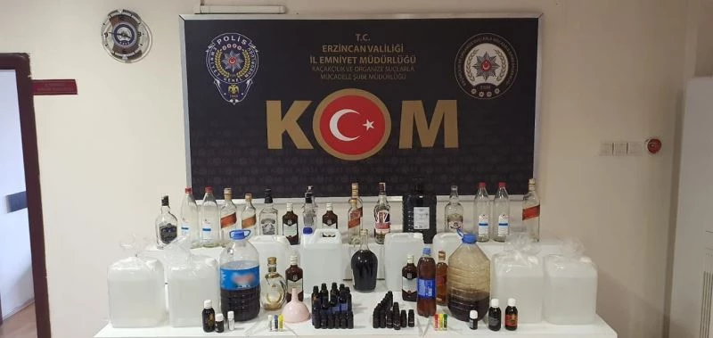 Erzincan İl Emniyet Müdürlüğü Kaçakçılık ve Organize Suçlarla Mücadele Şube Müdürlüğü ekiplerince kent genelinde kaçakçılık suçlarının önlenmesine yönelik ihbara istinaden yapılan çalışmalarda müstakil bir ev ve müştemilatında yapılan aramada; toplam 30 litre etil alkol, içki yapımında kullanılan ölçek, huni, muhtelif markalarda aroma ve tatlandırıcılar, el yapımı olduğu değerlendirilen su bidonları ve kola şişeleri içerisinde bulunan içkiler ile çok sayıda boş içki şişeleri ele geçirildi.
